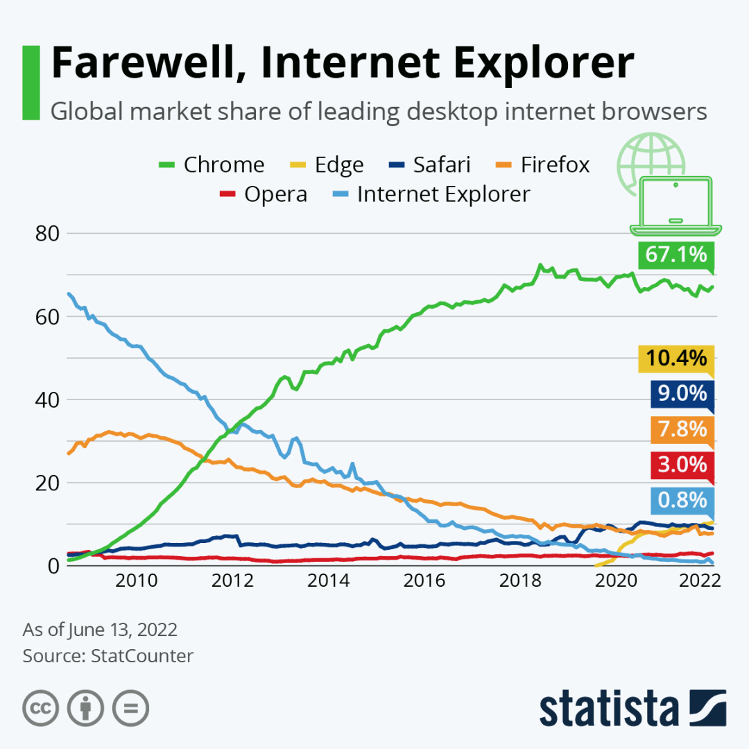 In just a few years, Chrome nailed IE to the wall of shame.